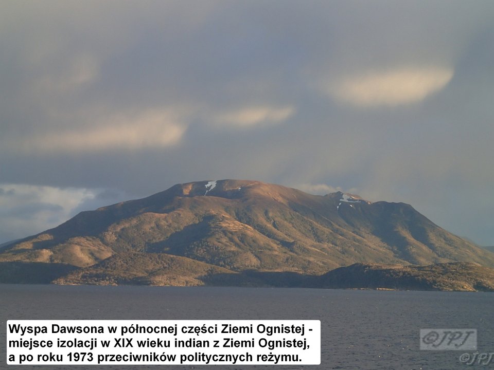 23 Wyspa Dawsona w póÅnocnej czÄÅci Ziemi Ognistej - miejsce izolacji w XIX wieku indian z Ziemi Ognistej, a po roku 1973 przeciwników politycznych reżymu.