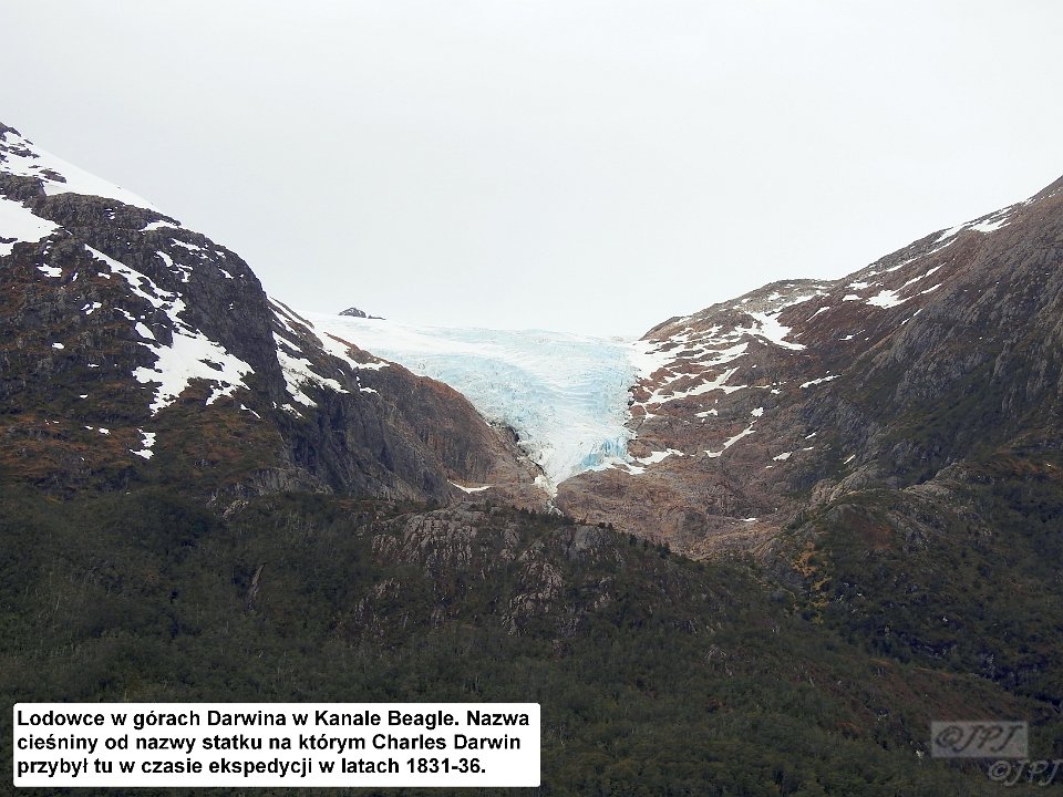 80 Lodowce w górach Darwina w Kanale Beagle. Nazwa cieÅniny od nazwy statku na którym Charles Darwin przybyÅ tu w czasie ekspedycji w latach 1831-36.